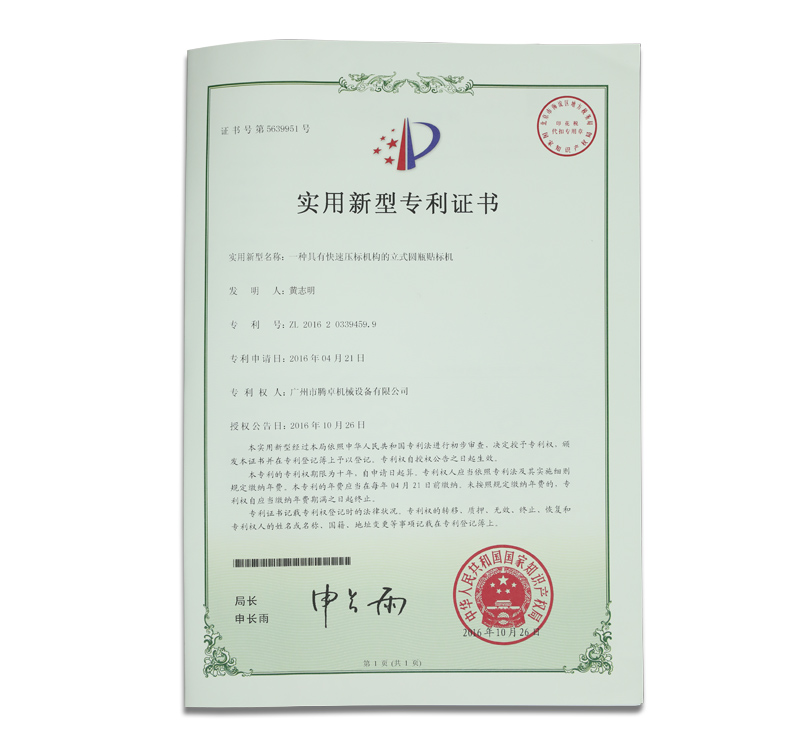 非標(biāo)定制自動(dòng)化包裝生產(chǎn)線證書